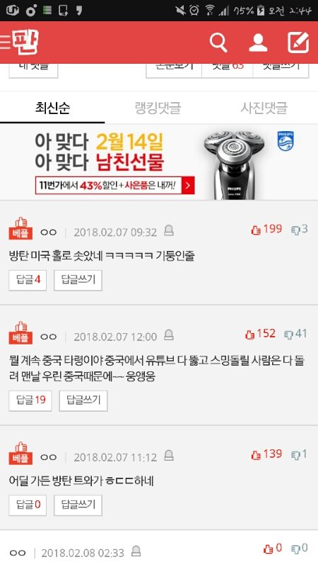 기분 좋은데 톡1선 베으댓 또 지랄남