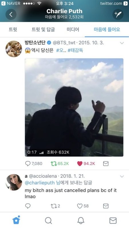 이건 찰리푸스 ㅋㅋ옛날 15년도 짹에 마음 누른거 그이후에도 마음꾹꾹ㅋㅋ