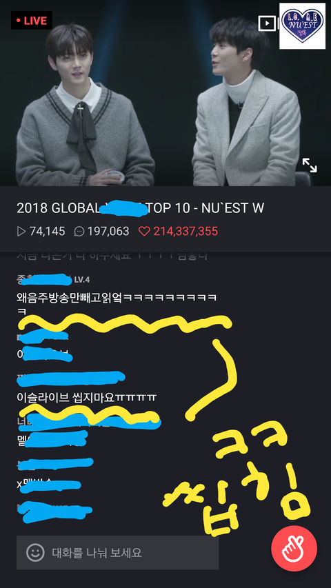 2. 우리 뉴블들 많은 러브들이 음주방송(이슬방송)