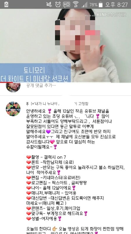 이건 유튜브에 업로드 되어 있는거고 얼굴이랑 이름은 가릴게