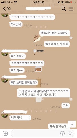 그 언니가 부메랑 도입부 듣자마자 “야 이거 엑소노래냐?” 이러더니 노래좋네 라고 하는데 기분 개좋은거. 언니가 무대 보고싶다그래서 파티피플이랑 엘리시온 보여주고 언니도 얘네가 노래 이렇게 잘하냐고 이거 라이브냐고 감탄하더니 어느새 파워들으면서 뿜뿜 춤추고잇음ㅋㅋ 부메랑에 귀가 트였지만 지금은 파워노래 개좋아함 비둘기춤이라면섴ㅋㅋㅋㅋㅋㅋㅋㅋㅋㅋㅋㅋㅋ 요즘엔 첸백시 관심생겨서 다운도 받고 영상도 계속 보는중..ㅋㅋㅋㅋㅋ 귀여워