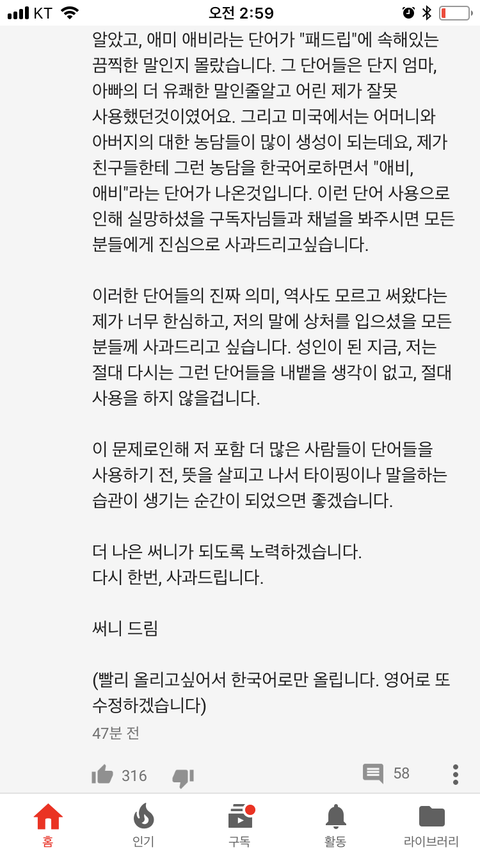 미국사는데 여기 애들도 Nigga함부로 안써.(내 타운은) 지만 미국에서 살다왔다 착각하나봐. 미국에서도 학교에서 Nigga하면 교장실로 불려가는데 뭔 개소리하고 앉아있어. 그리고 14살~16살이면 학교에서 다 역사공부하는 나이인데 무슨 그 단어가 어떤 뜻이였는지도 몰랐고 왜 쓰면 안되는지를 몰랐다하냐. 그리고 미국에서는 엄마와 아빠의 대한 농담이 자주 생성된다고? 도대체 어딜가야지 그런 농담을 생성하는 친구들을 만나냐? 추가. 나 뉴저지 살고있고 내가 살고있는 타운 Fort Lee, Leonia, Palisade Park처럼 한국애들 많고 번화된 타운은 아니지만 있을거 다 있고 그런 타운이야. 답글 읽어보니까 내가 일반화해서 미안한데 최근에 같은 동네 살다가 NC로 이사간 애랑 CA로 이사간 애 두명있는데 둘다 물어보니까 걔네들 학교에서도 nigga라는 단어 조심하고 별로 안쓴다고 답해줬어. (이것도 일반화일지 모르겠지만) 그리고 원래 댓글에에는 (내 타운은)이라고 추가했어