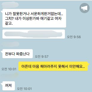 제가 정말 잘못 행동한 거라면 마구 욕 써주세요. 그래야 저도 제 잘못을 알고 뉘우칠테니깐요..
