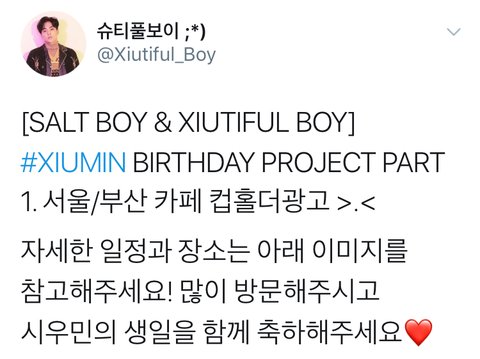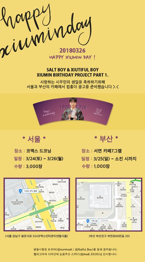 슈티풀보이님이 시우민 생일을 맞아 카페 컵홀더광고 하심