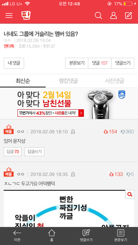 두번째 베댓에 추천 한번씩만 눌러주라 ㅠㅠ 저기 댓글 개심각해