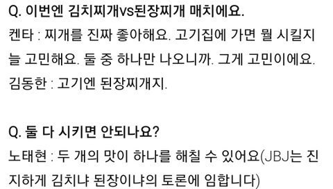 인터뷰하다가 진지하게 김치 된장 토론을 하기 시작한다.