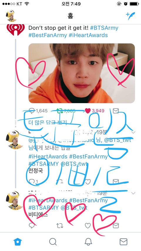 맞아, 얼마나 길게 인내하고 또 즐기는 팬덤이 우승하겠지 이건 방탄만을 위한 건 아냐 우리 팬덤을 위한 것이기도 해 상상해봐 베스트팬덤이라니... 우리 아미가 그 어마어마한 무대에서 베스트팬덤이라고 방탄에 의해 불린다고 상상해봐 그 감동은 무엇을 상상하든 그 이상일꺼야 탄이들도 날고 있지만 우리도 이제 같이 날자 조롱, 비난, 음모 힘들게 버텼던 나날들이 사실은 다이아몬드가 되기 위함이었다는 것을 스스로 증명해보자 베스드팬덤 우리꺼!!!!!!!