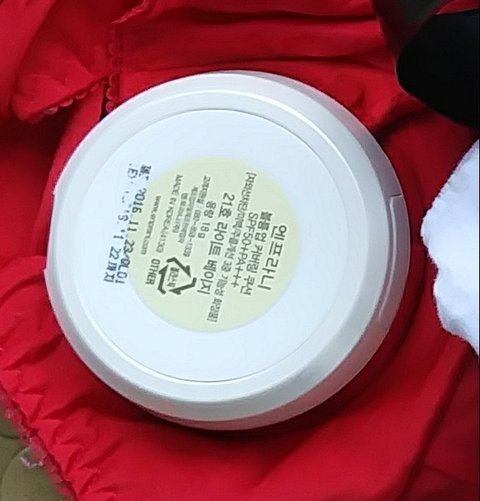 티 1장, 파랑색 짧은 트레이닝팬츠 1장, 빨강색 여자속옷 상의 2장, 빨강색 여자속옷 하의 1장, 분홍색 도트무늬 여자속옷 하의 1장, 팬티라이너 여러개, 엔프라니 팩트( 볼륨업 커버링쿠션 21호 라이트베이지) 1개가 세탁기 안에 있었습니다.