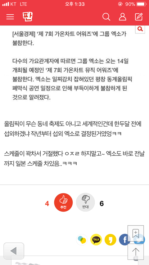 엔터에팩트글만써도 반대6개 댓글론 반박못함ㅋㅋ