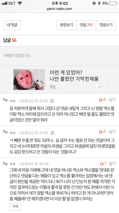 얘들아 칭찬해줘 내가 저 베댓 지우게 했다