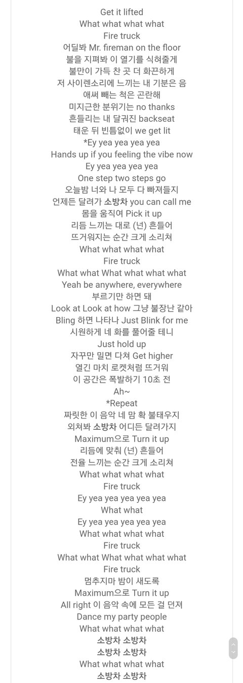 팬톡보다가 소방차 가사 야하다고 그래서 봤더니ㅋㅋㅋㅋ