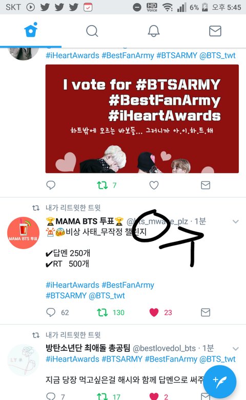 아침 7시부터 지금까지 트윗 각각 50개 씩