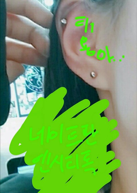 나 귀 아예 처음 뚫는거였는데 태용이가 한 귀걸이가 너무 아른거려서...ㅠㅠㅠㅠ진짜 갑자기 뚫었는데 위에 사진보고 뚫어달라햇구 셀카라서 반대편으로 나오는데 실제로는 왼쪽 귀야ㅋㅋ 진짜 하나도 안 아팠고 이거 다 아물면 오른쪽은 테니가 뚫은 것처럼 뚫어보려구! 혹시 최애 귀 뚫은 거 따라하그 싶은 시즈니 있으면 언능 뚫어 나 쫄보인데도 하나도 안 아팠엉