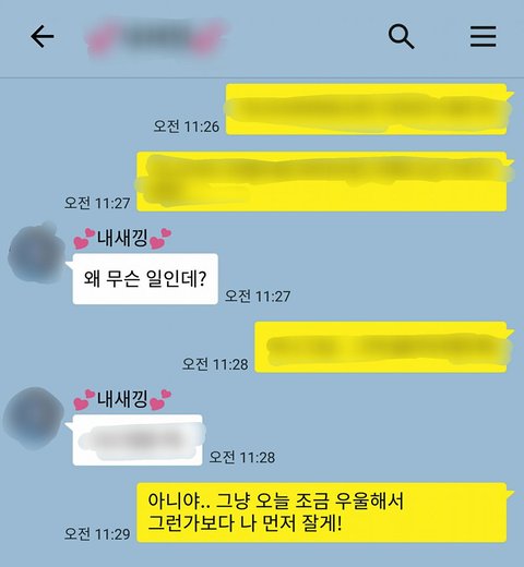 그런 저에게 남자친구가 어제 왜 우울했던 거냐며, 많이 걱정했는다는 말과 함께