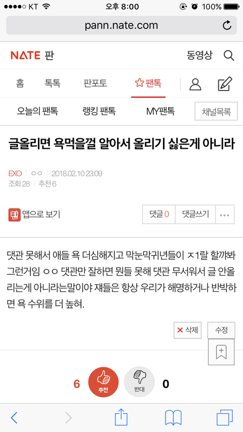 어제도 하지말자는 글 꾸준히 나왔음 . 근데 하자는 애들이 더 많아서 하자고 결정된 이상 당일인데 엎는건 좀 아니지 않냐. 물론 나도 글 쓰지 말자는 입장이었는데 이미 결정된 이상 우리가 할일은 댓관 뿐임 그리고 "이제와서 글 엎자는 애들은 뭐야 어제부터 글 쓰던가"라고 하는 애들아 어제도 하지 말자는 글 나왔었어 이제서야 엎자는 애들도 있었겠지만 그니까 우린 어제 다수결이 나온이상 올리는거고 댓관을 해야돼