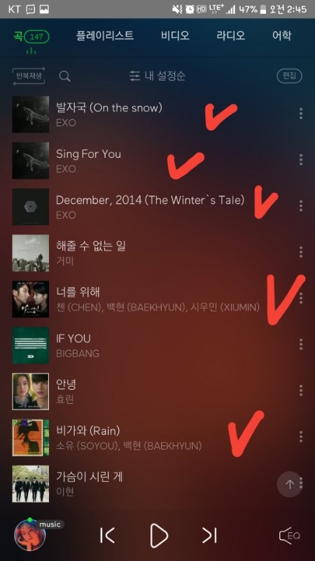 우선 저의 플레이리스트에 있는 엑소노래들 입니다 비슷한곡 추천좀 해주세요 ㅠ 늦은시간에 죄송해요 ㅠ