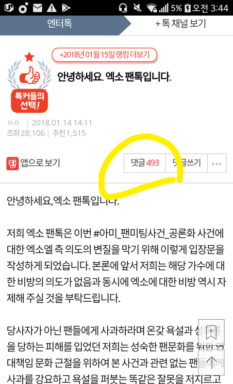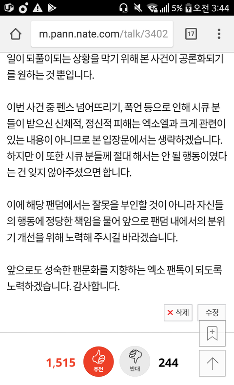 나 예전에 공론화 입장문 썼던 년인데 분명히 댓글 멈춘 게 546개였거든? 근데 댓 멈추고 한 일주일 정도 뒤에 갑자기 하루만에 서른 몇 개가 확 지워짐. 한 사람이 그렇게 쓰고 한 번에 지운 거밖에 설명이 안 되잖아...