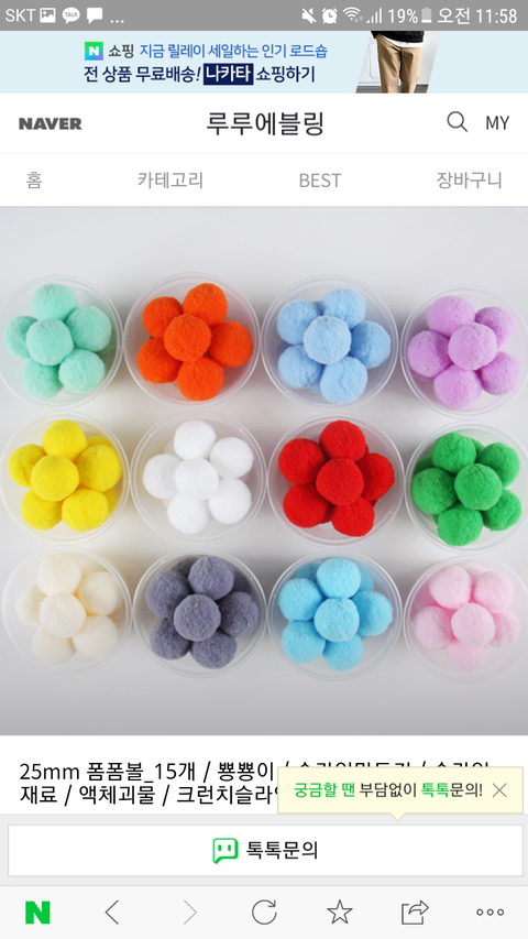 폼폼이중에 뭔색살까 빨강,초록사서 크리스마스 느낌나게만들까 아니면 분홍,하양,하늘 사서 파스텔톤?느낌나게 만들깡