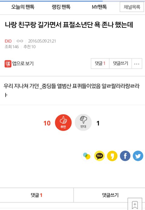 오바하는게 아니라 진짜 검색해보셈 욕하는거 싹다 ㅇㅅㅇ팬톡임