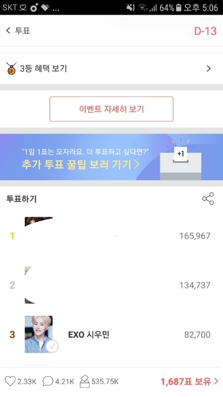 이거 그냥 꽃만 주구장창 누르면 투표권이랑 캐쉬줌 나 30분만에 2000표 모음
