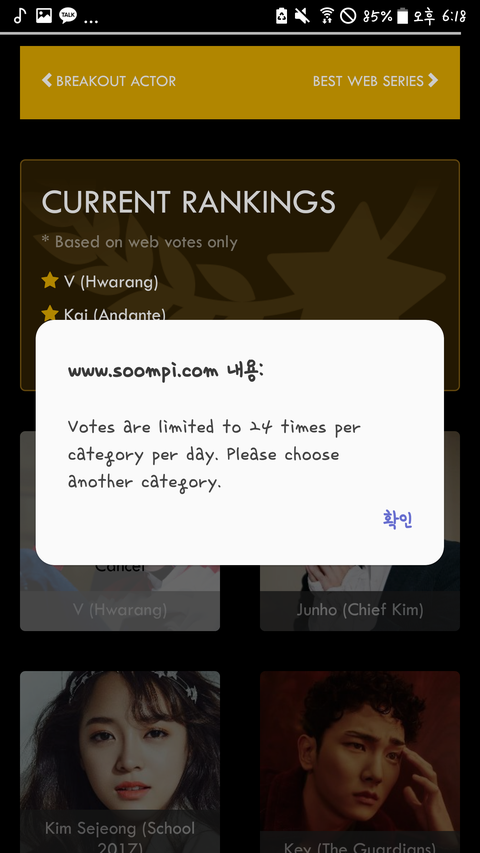 하루에 투표를 24번이나 할수있어!(새로고침으로 하면 빠르게 할수있당~)