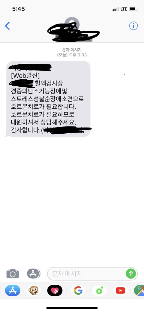 저 문자를 받은날 회사일이고 뭐고 머릿속에 하나도 들어오지 않고 당장 큰병원에 가서 제대로 치료를 해야겠다는 생각만 들었습니다. 정말 무서웠어요 ㅠㅠ