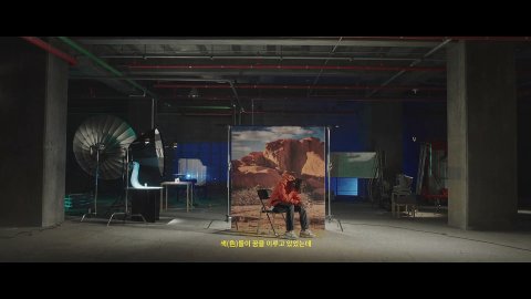 드림랩에서 그림 앞에 앉아있는 태용이와 뒤의 푸른 빛