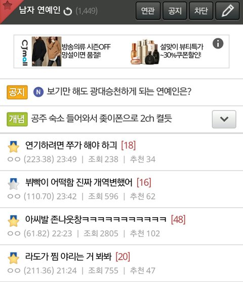 개념글 올리면 그밑에는 멤버에 대한 인신공격성