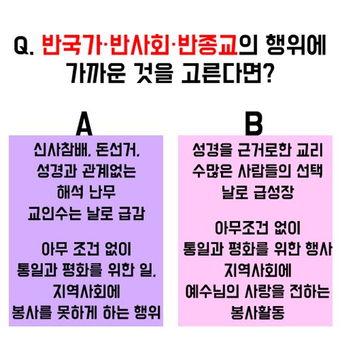 반면 신천지는 국민들에게 나라사랑 정신을 심어주는 조국 통일 선언문 비석을 세우고 대형 손도장 태극기를 국민들과 함께 만드는 것과 소외된 이웃들과 함께 하고자 하는 마음에 자원봉사를 하고 있습니다. 이런 일들이 반국가, 반사회라 할수 있을까요~