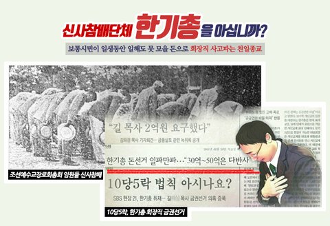한기총 회장 선거 때만 되면 기독교계가 시끄럽습니다. 10당 5락이라는 말 들어보셨지요?10억을 쓰면 회장직에 당선되고, 5억을 쓰면 떨어진다는 말입니다. 한기총 회장직 선출 때 나온 말입니다.