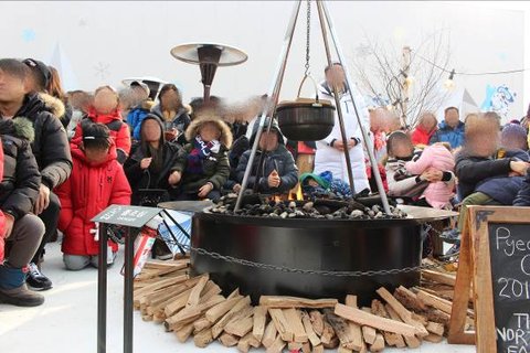 관람객들이 편하게 쉬어갈 수 있는 텐트와 의자, 난로가 마련되어 있었어요