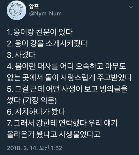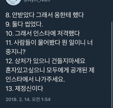 옹성우랑 친분이 있었는데 걔가 강다니엘을 소개시켜줬고 사겼는데 사생이 그걸 보고 지네 얘기로 빙의글을 썼다 그래서 들킨거 아니냐 어쩌구저쩌구 하면서 술쳐먹고 그 빙의글 다 보고 빙의글 자기 인스타에 박제했던데 나도 걍 훑어서 본거라 잘은 모르고 트위터나 인스타하는 애들은 들어가서 함 봐봐