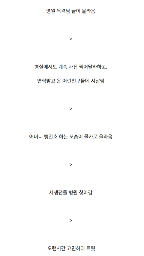 니들은 병간호하는데 사진 찍어달라고 하면 기분 좋겠냐 팬도 아닌 것들아