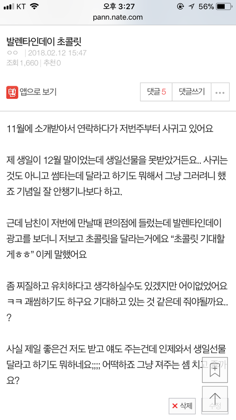 그날 이후로 초콜릿 얘기 한마디도 안했는데 방금