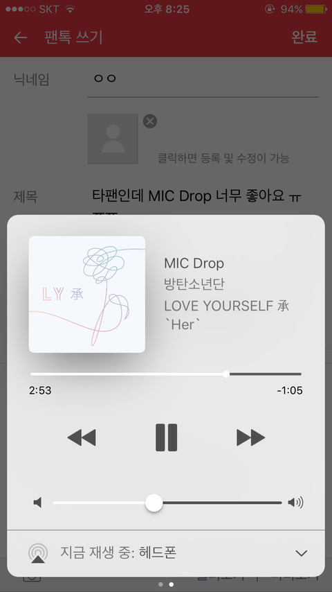 어그로 방지해서 어느쪽 팬덤인진 작성하진 않겠습니다 마이크 드롭에서 did you see my bag인가??? 그 부분 너무 좋고 춤도 간지나요 하소연하고 싶은데 털 곳이 없어서 여기 작성하고 가는데 ㅠㅠㅠㅠ 혹시 상황 안 좋은데 제가 글 쓴 거라면 죄송합니다 즐덕하세요 ㅜㅜㅜㅜ 노래 잘 듣고 있어요
