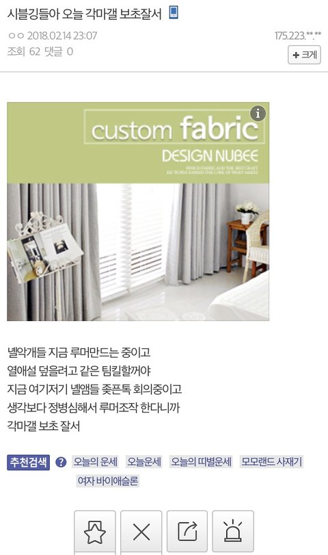 이간질하지마 저런 글은 나도 쓴다ㅋㅋㅋㅋㅋㅋ 그리고 추천 몰려와서 박은거 다 티나ㅠ