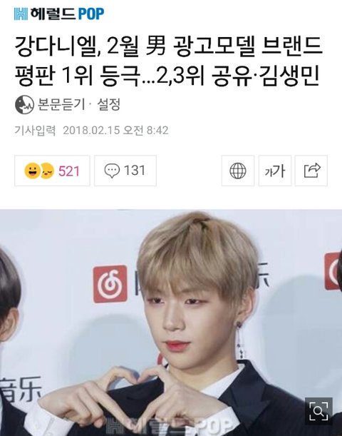 광고모델부문은 처음으로 1위한거야 우리녤 대단해❤