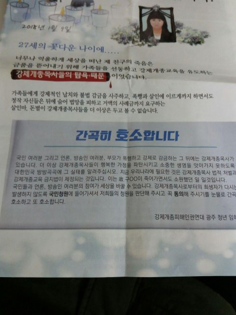 강제개종 목사 처벌촉구 하기를 기원합니다.