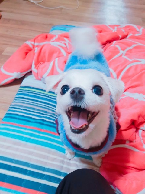 강아지 이런 표정은 처음봐서 사진 찍어 놨는데 웃는건가요 아니면 원래 입 벌리면 저렇게 보이는 건가요?