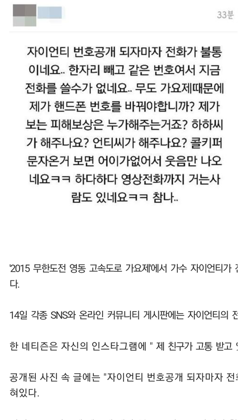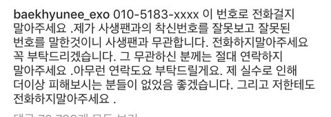 그런데 사생팬이 아닌 일반인 아주머니의 폰번호였던 것
