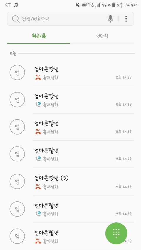 저기 판판폰은동생꺼고 어른폰은내꺼임 저거 한번만 거절하고 다시 전화하면 ()안에 숫자안뜸