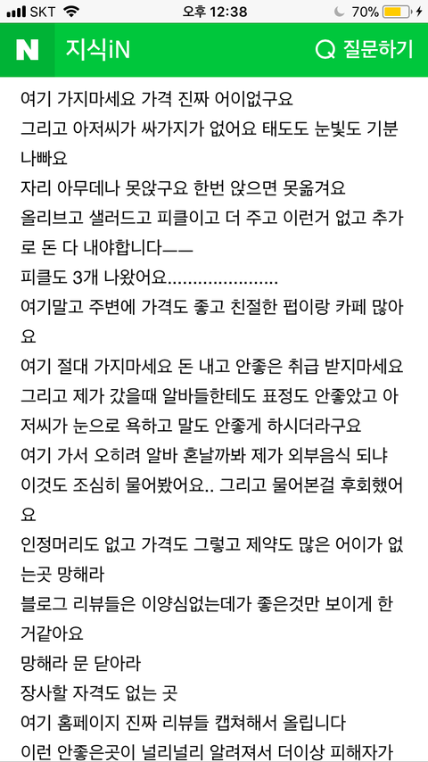 여러분 알바생들에게도 손님들에게도 거지같고 재수없는곳입니다