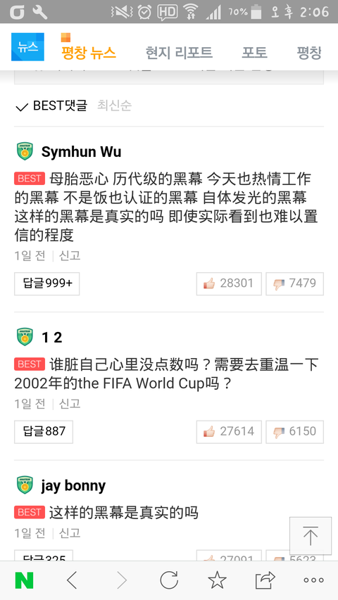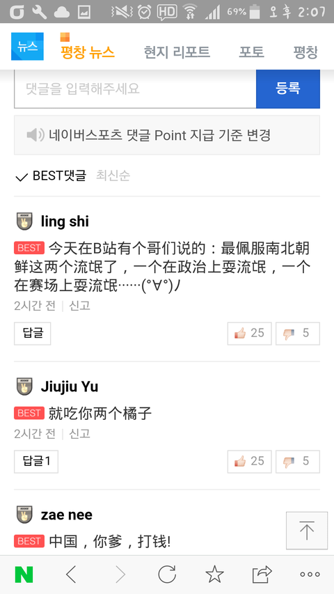얘들아 네이버 평창올림픽 뉴스 댓글봤니