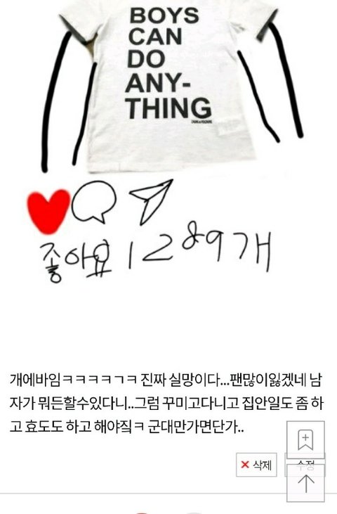 어느날 인기남돌이 인스타에 협찬받은 옷을 입은 글을올림