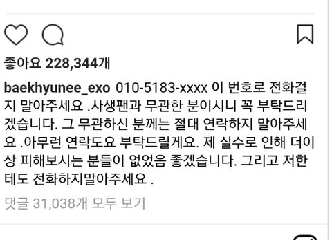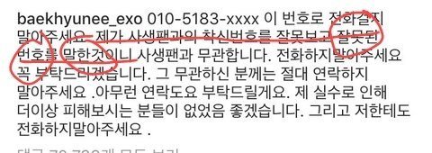 ㅅㅂ 잘 알고 말해 백현이 부른 번호는 사생 맞아 잘못 퍼진 거지