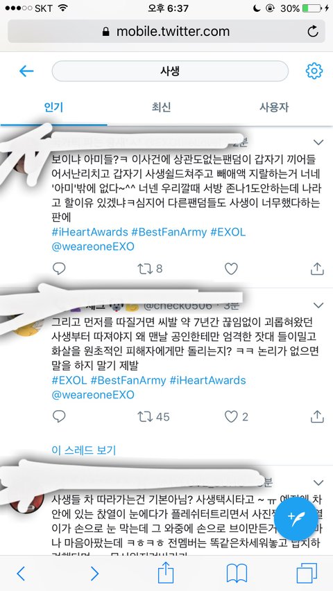 인기순으로 좀 내리면 타팬덤분들이 우리 쉴드 쳐주심