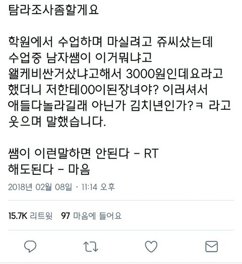 어떤 선생이 삼천원 가지고 ㅈㅣ랄하냐..