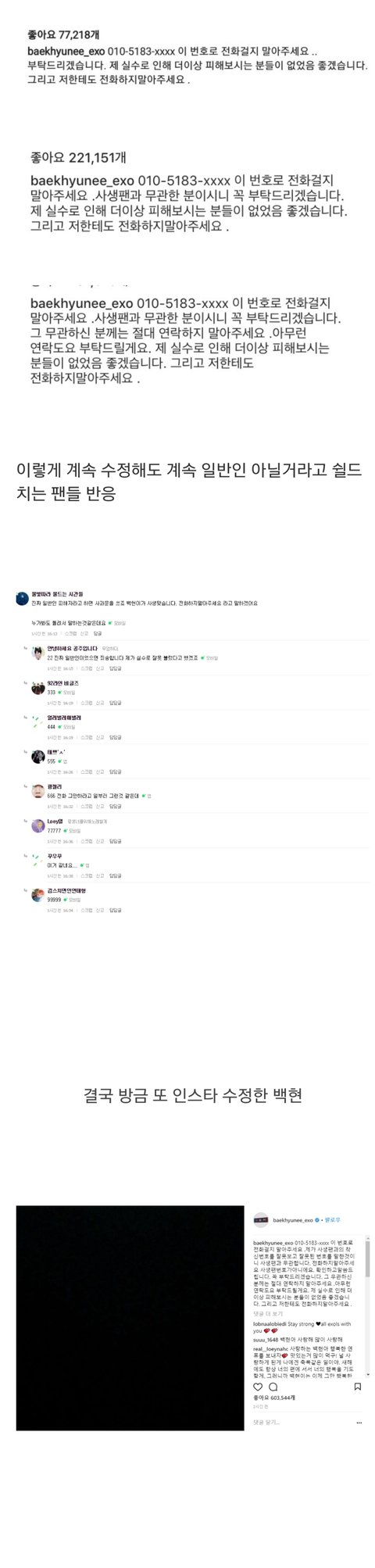 자기 말을 믿지 않는 팬들 때문에 몇시간째 인스타 수정중인 백현