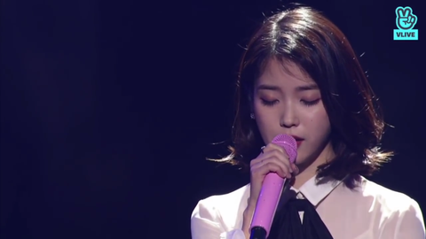가온에서 밤편지를 부르고 있는 아이유