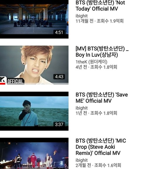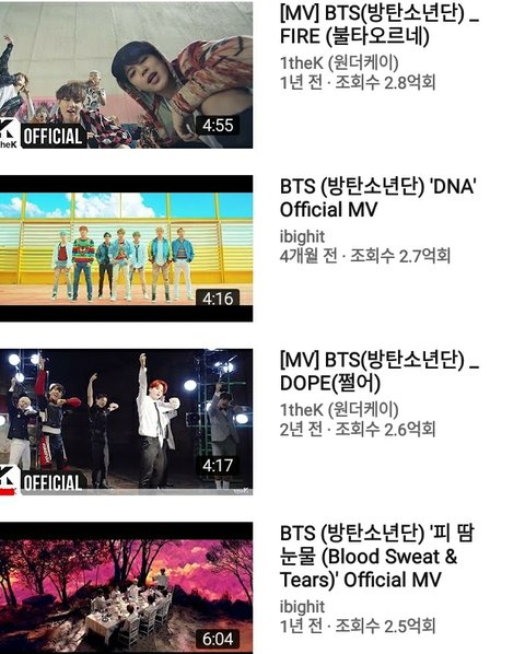 남자 아이돌 중에 1억넘은 뮤비가 제일 많음 방탄소년단 1억넘은 뮤비를 세보자면 12개